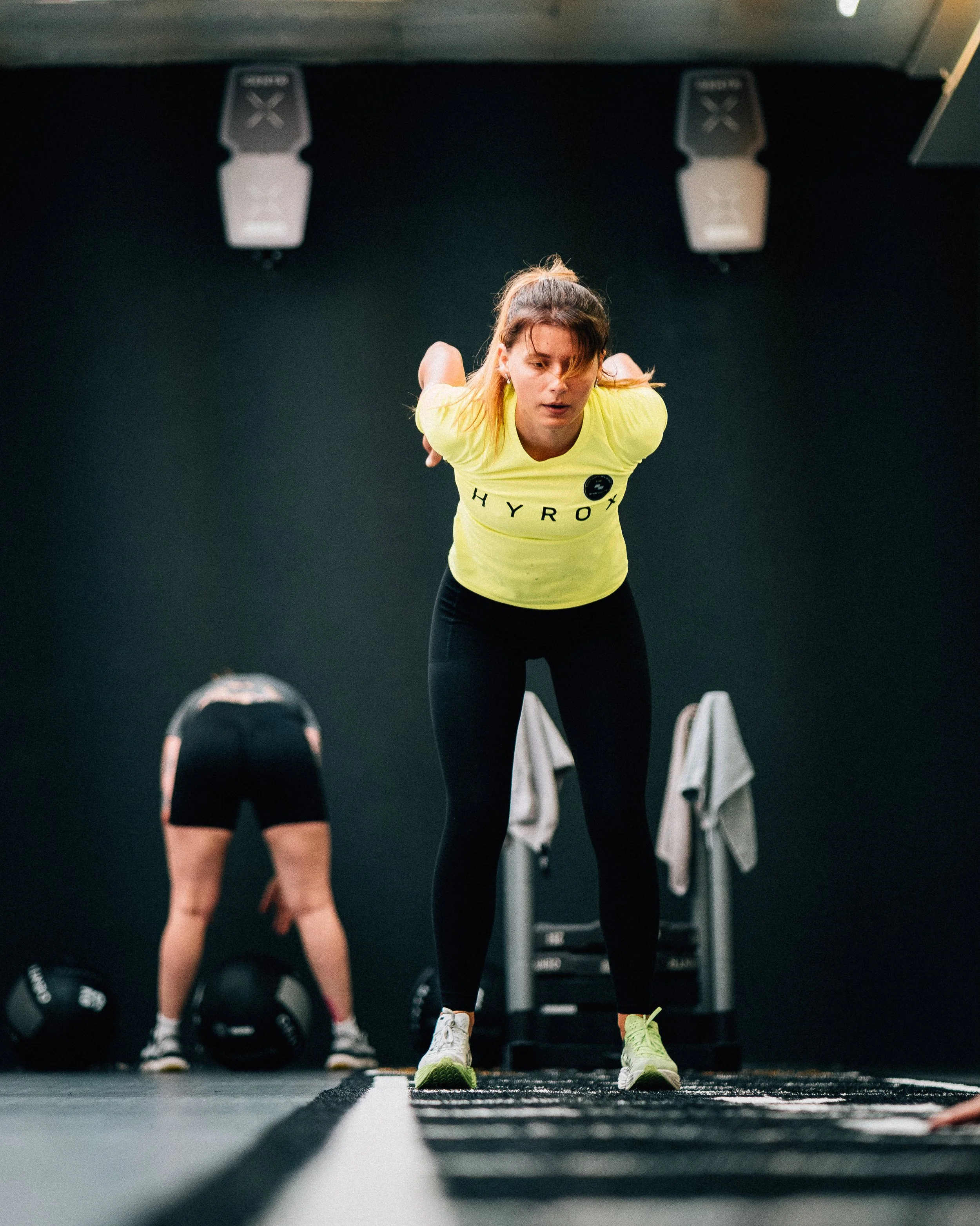 Hyrox ist ein innovativer, einzigartiger und ganzheitlicher Fitness-Ansatz, der Laufe und funktionelle Fitness zum größten Indoor-Sportevent der Welt vereint. Jedes Race erfolgt genau im gleichen Format: 1 Km laufen, gefolgt von einem Workout. Das Ganze wird insgesamt 8 Mal wiederholt.