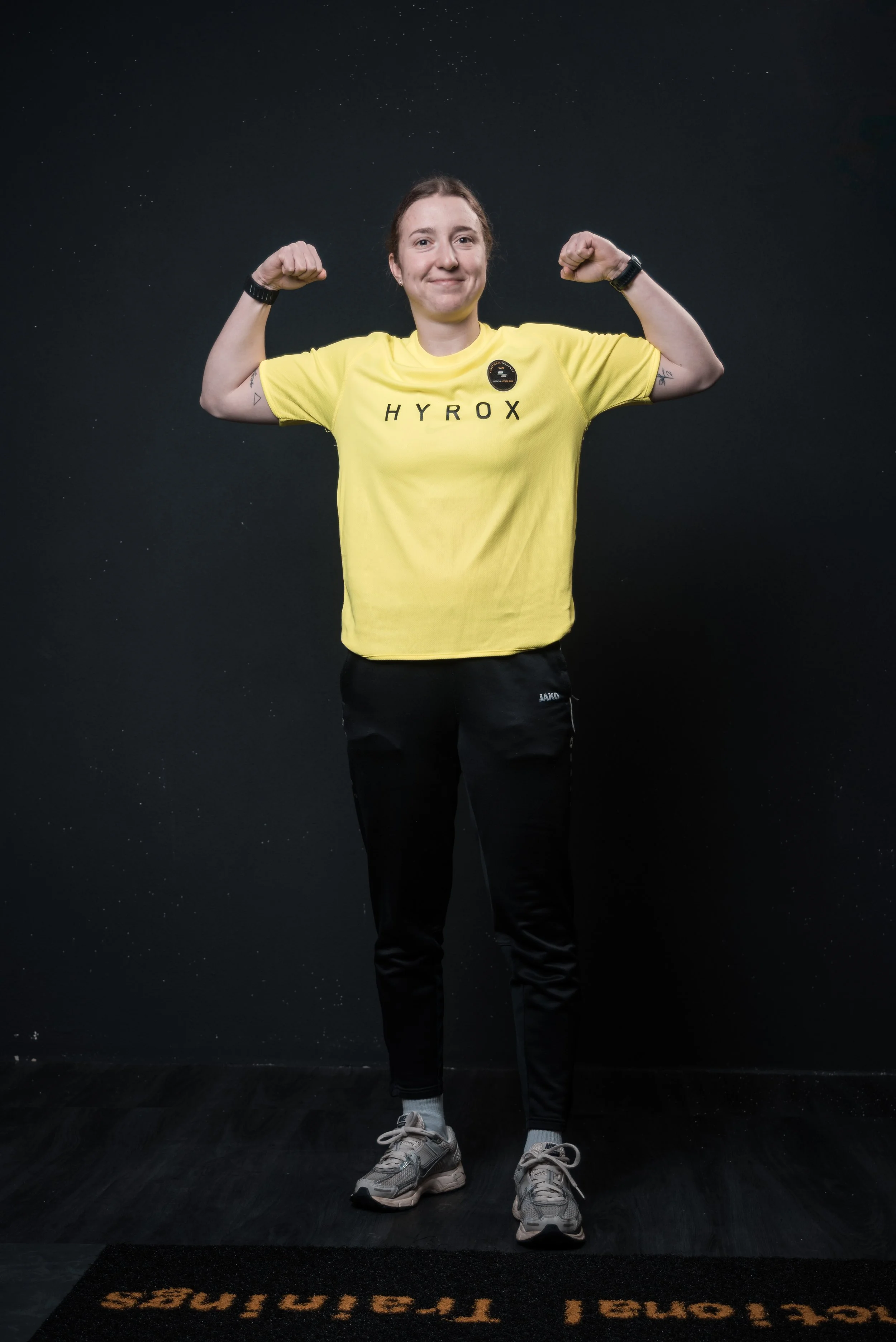 Als Trainerin biete ich Functional-Training-Kurse an und arbeite insbesondere im HYROX-Bereich. Mir liegt es am Herzen, dass jeder Teilnehmer – unabhängig vom Leistungsniveau – sicher, sauber und effektiv trainiert.